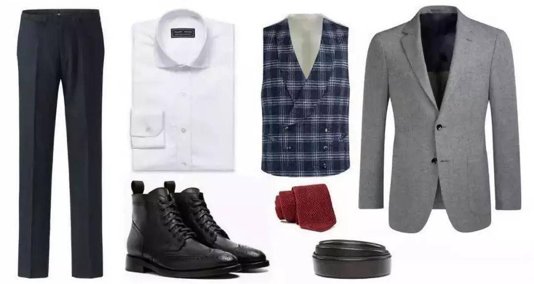 建议搭配:衬衫、马甲、领带、西装外套、西裤、布洛克花纹靴。 混搭的比较潮,不是每个男生都能够驾驭的,最好有一定的身高穿起来会比较时尚,格子马甲让沉闷的黑白灰拥有了更多的动感,让偏正式的风格具有时尚的韵味。