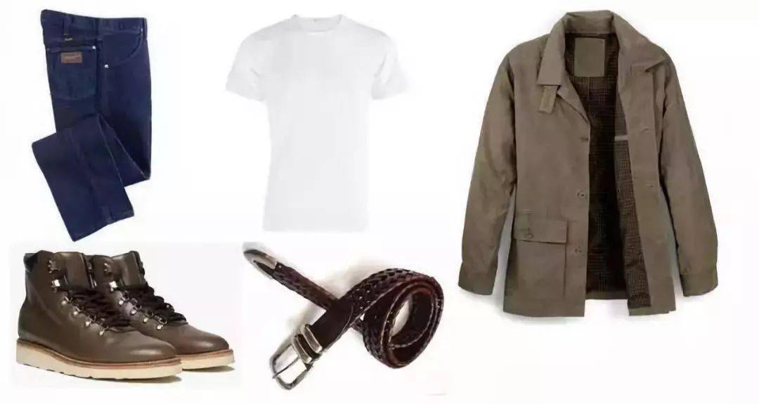 建议搭配:圆领T恤、纯棉外套、编织皮带、牛仔裤、户外皮靴。 深蓝色牛仔和白色圆领T恤是“户外boy”经典搭配,富有野性的皮靴和翻毛皮外套色系、风格均完美搭配。性感比较豪爽、洒脱的男生选择这套气质会提升很多哦。